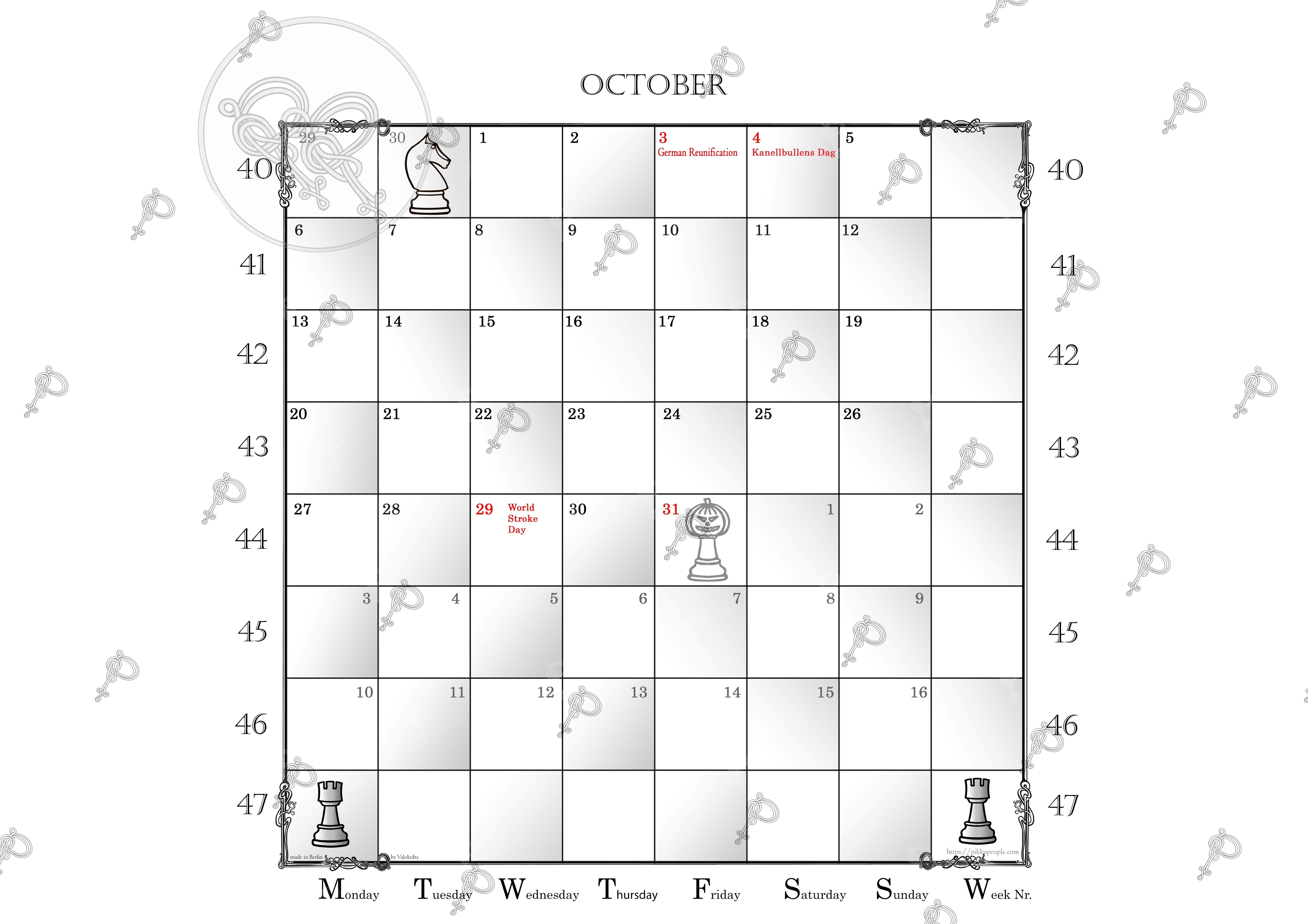 International holidays and other interesting dates are included in the calendar. While being generally neutral when it comes to faith I obviously couldn’t ignore my protestant european background.